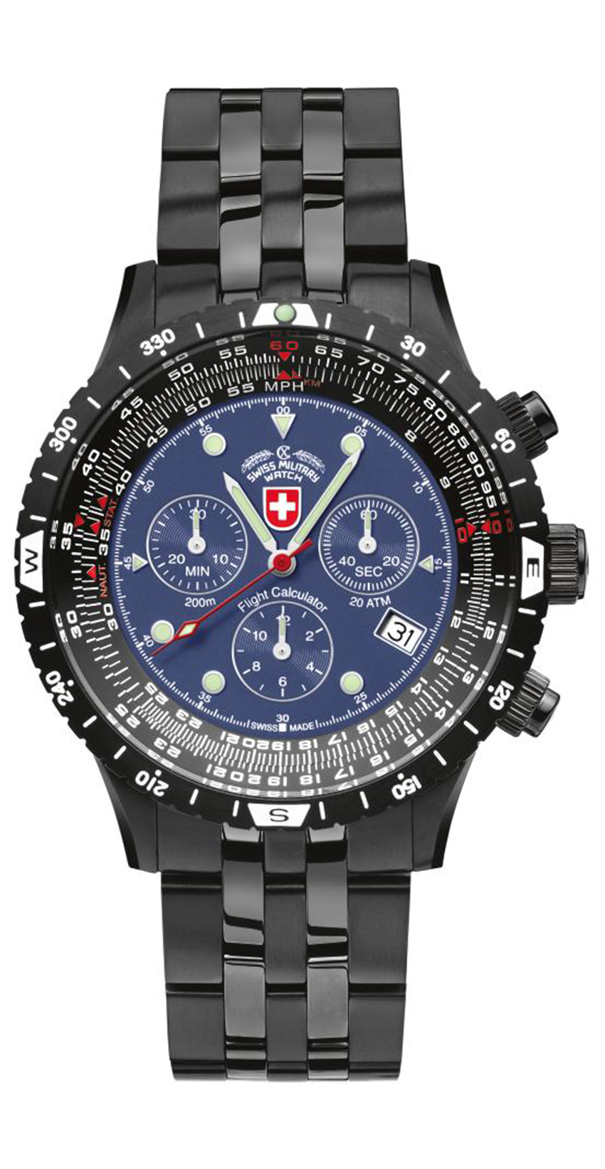 CX SWISS MILITARY™’S AIRFORCE I was designed to meet the extremely high standards of the equipment that is being used in such aircrafts as the US Airforce I. Only choice materials may be used in the production process and strict quality control on several production levels is paramount.