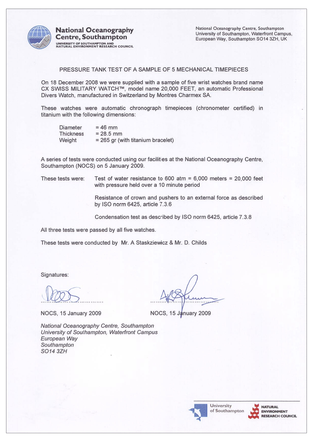 CX Swiss Military Watch™ is known for its uncompromising attention to the functionality of their timepieces – their watches are not accessories, but instruments the professional can rely on. With the 12’000 FEET CX Swiss Military Watch™ held the World Record for water resistance of automatic diving watches from 2005 to April 2008 with a water resistance of 12’000 feet or 3’657 meters.