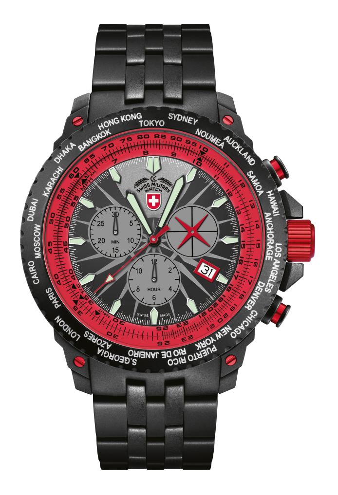 The HURRICANE WORLDTIMER continues the success story of the HURRICANE released in 2010. True to its heritage the HURRICANE WORLDTIMER offers all the functions expected of a professional pilot’s watch: a circular sliderule, allowing for all types of aviation-relevant calculations, a world-time bezel with multiple timezones and a chronograph. The solid stainless steel case with a screw-down crown houses the Ronda cal. 5030D quartz movement. The compass-rose design of the dial sports Superluminova™ covered indices to allow full functionality at night, too. The HURRICANE WORLTIMER is water-resistant to 20atm or 200 meters
