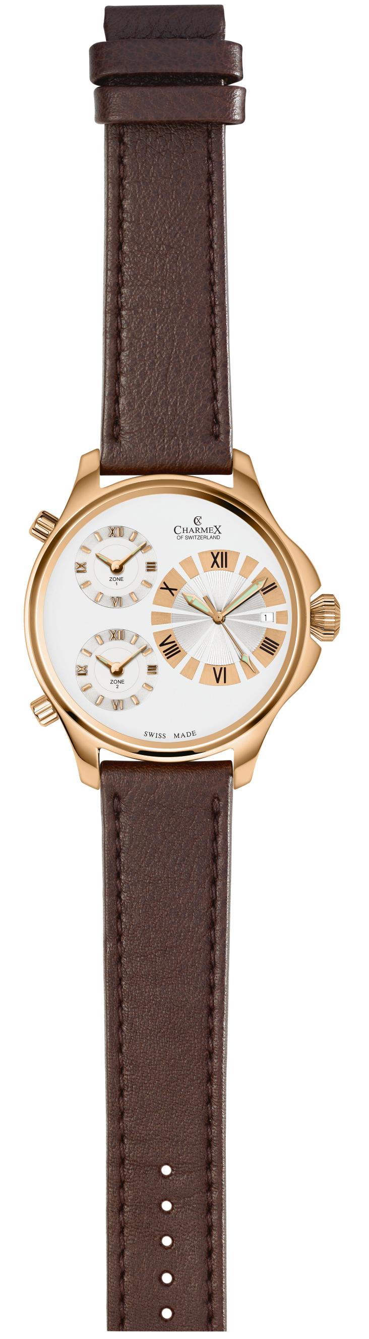 Our model COSMOPOLITAN II is the perfect companion for those travelling often or dealing with clients in different time zones – the main time zone is indicated by the slightly larger dial sporting a date window while the two additional time zones are slightly smaller and without date