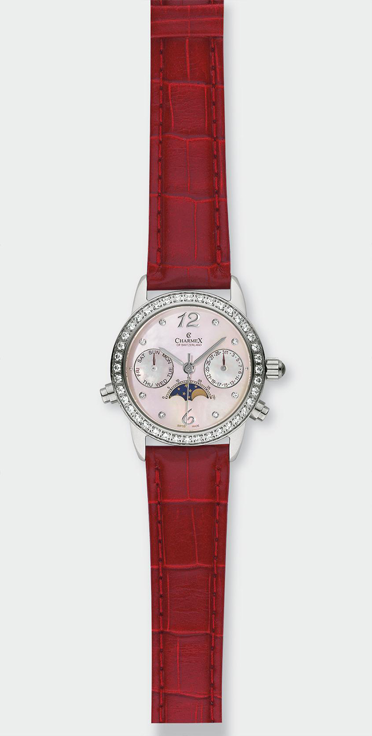 Mandalay, the second biggest city in what today is known as Myanmar, was once the last Burmese Emperors capital. In the 19th century this city’s name was used synonymously for the beguiling and mysterious lure of the Far East. Our timepieces MANDALAY evoke this aura with their exotic and filigree design. The use of the Ronda movement cal. 706 allows for a multi-function display of day, date and moon phase. The mother-of-pearl dial adds to the subtropical flair and is framed by genuine set circonias.