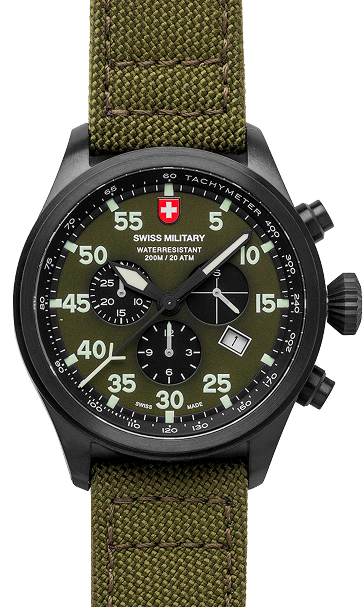 olive green genuine canvas strap (length 190mm, width 22mm; pin buckle).