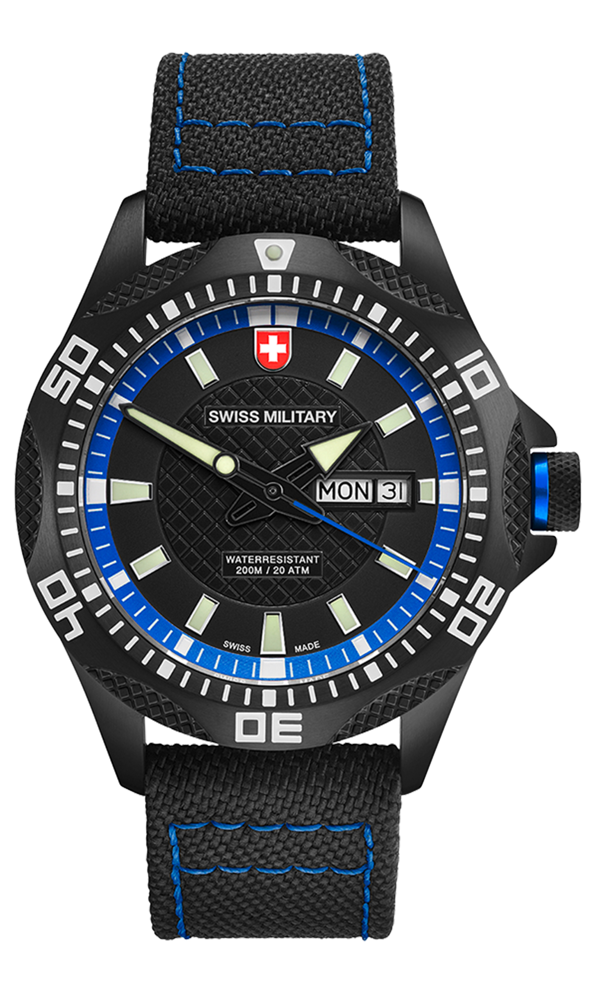 black/blue dial,